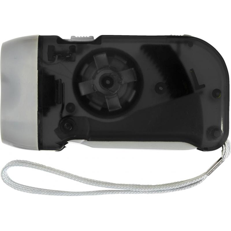 Frosted kunststof dynamo zaklamp met 2 LED lampjes en polskoord, incl. batterijen.
