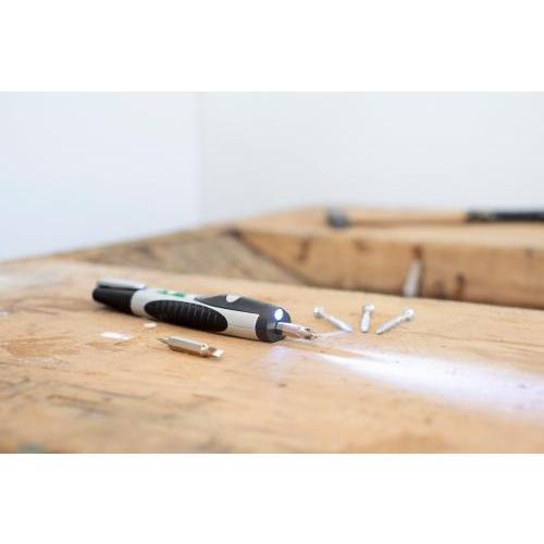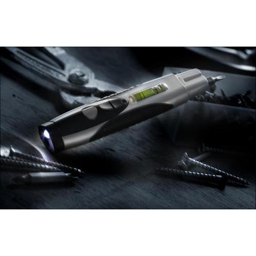 Kunststof schroevendraaierset met 2 bitjes, waterpas en LED lampje, incl. batterijen.