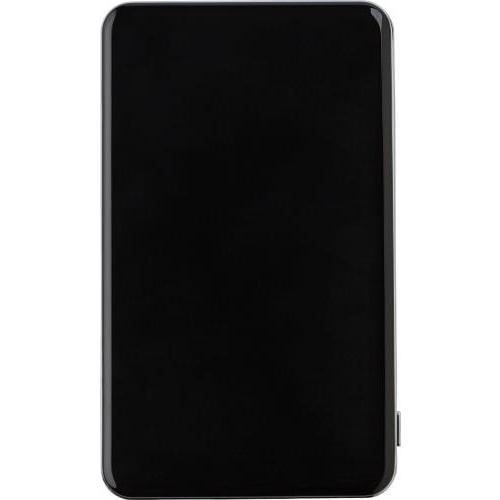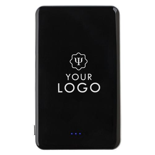 Kunststof Li-polymeer powerbank met capaciteit van 5.000mAh, ingang van 5V/1.000mA en uitgang van 1.500mA/2.100mA/5V. Incl. vijf blauwe LED indicatielampjes en witte USB/micro USB kabel (ongeveer 32 cm), geschikt voor de meeste mobiele apparaten.