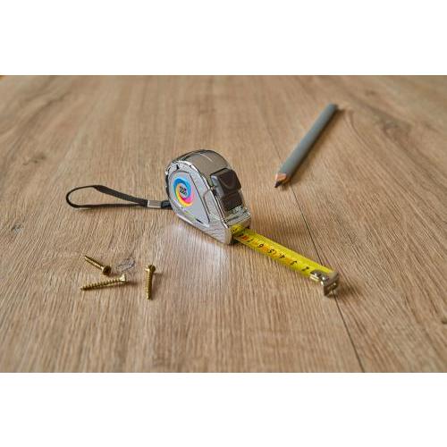 Kunststof rolmaat met cm lint (5 meter) in glanzende uitvoering, met riemclip en polskoord. Alleen in centimeters.