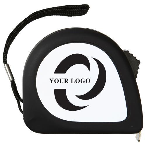 Kunststof rolmaat (2 meter), met metalen riemclip en polskoord.