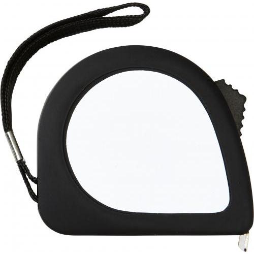Kunststof rolmaat (3 meter), met metalen riemclip en polskoord.