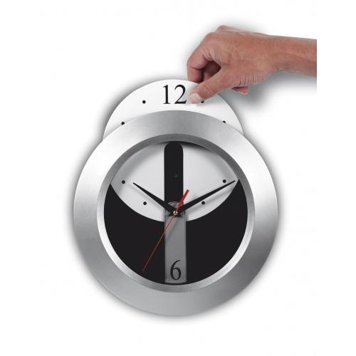 Kunststof analoge wandklok met uitneembare witte wijzerplaat, incl. batterij.
