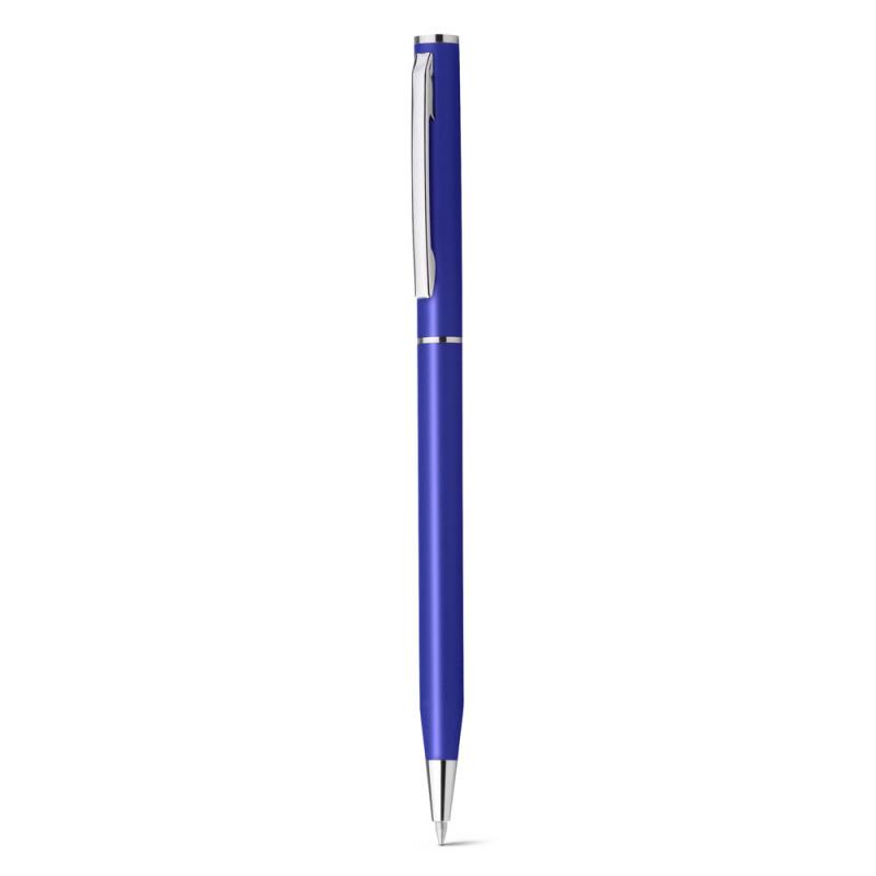 Aluminium balpen met clip en draaimechanisme. Blauwschrijvend
