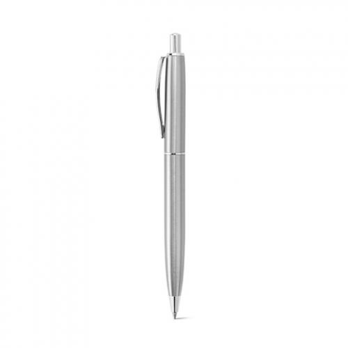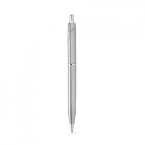 Balpen van roestvrij staal 53% gerecycled met een glanzende houder voor een premium afwerking. Voorzien van een clip en blauwe inkt. Bij lasergravering verandert de personalisatiekleur in zilver