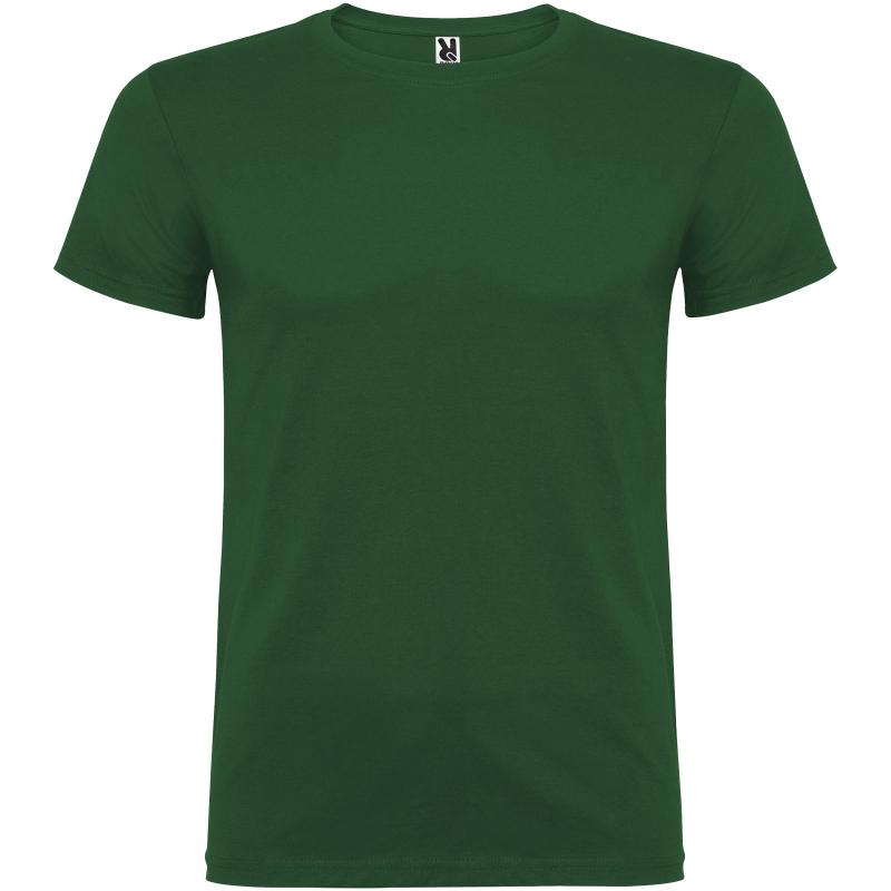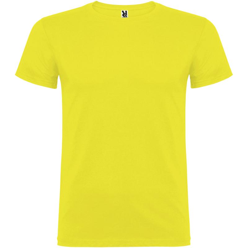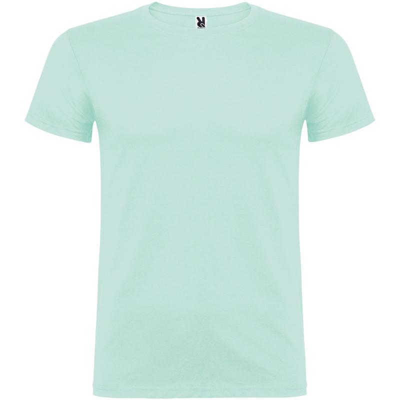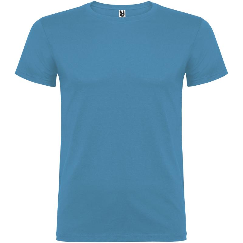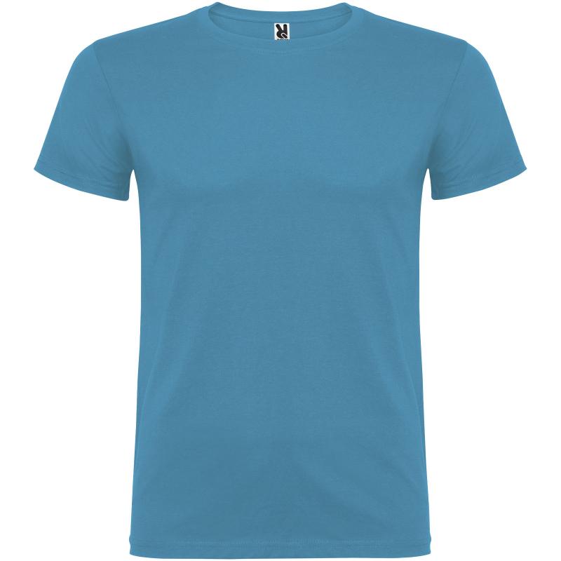 T-shirt met korte mouwen en dubbellaagse ronde hals van elastaan, gemaakt van buisvormige stof voor volwassenen. versterkte bedekte naden in de kraag. verwijderbaar etiket. het model is 190 cm en draagt maat L.