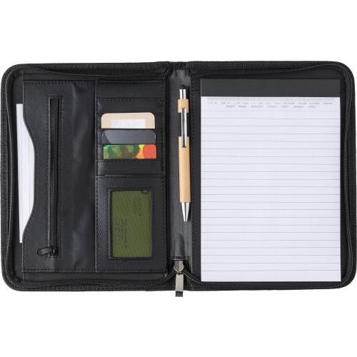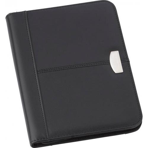 Bonded leather documentenmap (A5), 'Laserline', met ritssluiting, diverse insteekvakken, gelinieerd schrijfblok en metalen graveerplaatje, excl. pen.