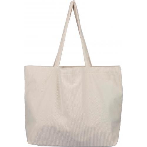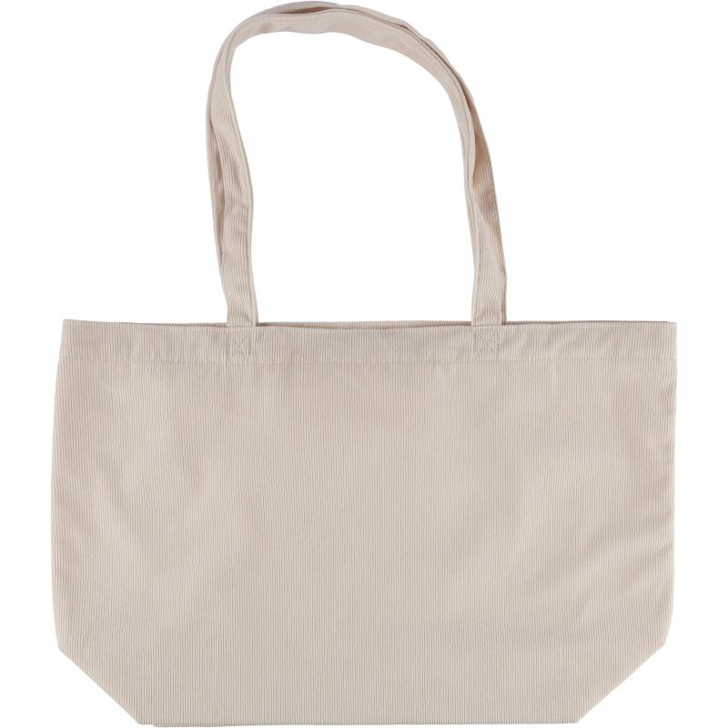 Corduroy draagtas met lange hengsels (2,5 × 60 cm). Voorzien van een ruim hoofdvak (51 × 15 × 33 cm) en een binnenvak (10 × 10 cm). Geschikt voor dagelijks gebruik.