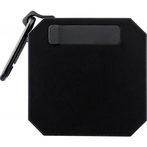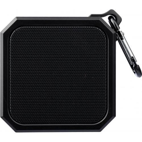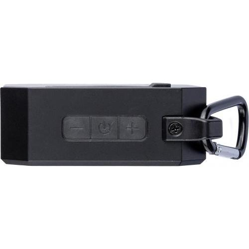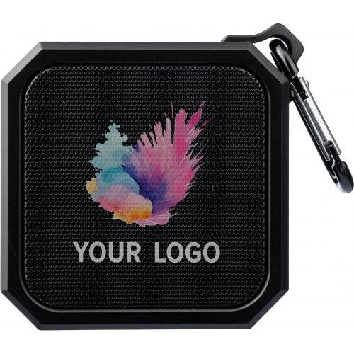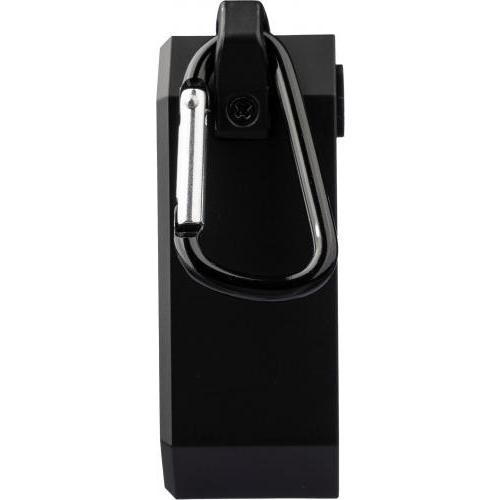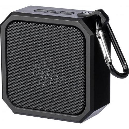 Gerecycled ABS luidspreker met karabijnhaak en plastic clip. IPX4-gecertificeerd. 3W output, DC 5V input, 300mAh ingebouwde oplaadbare batterij, met 2 uur speeltijd. Werkafstand van 15-20 meter, signaal-ruisverhouding van 87 dB. Frequentiebereik: 100 Hz tot 20 kHz. Inclusief 50 cm Type-C oplaadkabel. Draadloze verbindingstechnologie: 5.2. Per stuk verpakt in een bruin kartonnen doos.