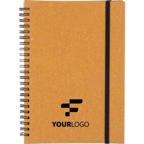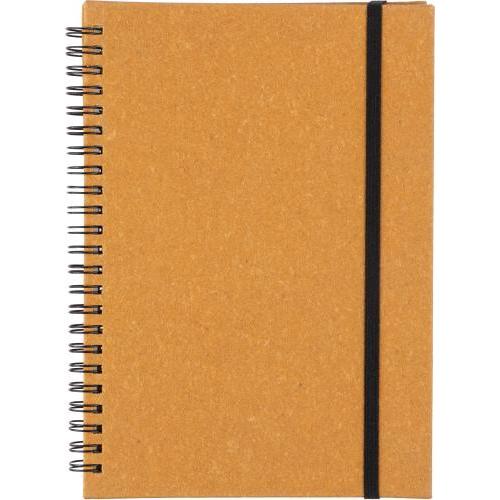 Gerecycled leren notitieboek (ca. A5) met 80 pagina’s (70 gram). Reliëf van gerecycled leer op de achterkant van de kaft.