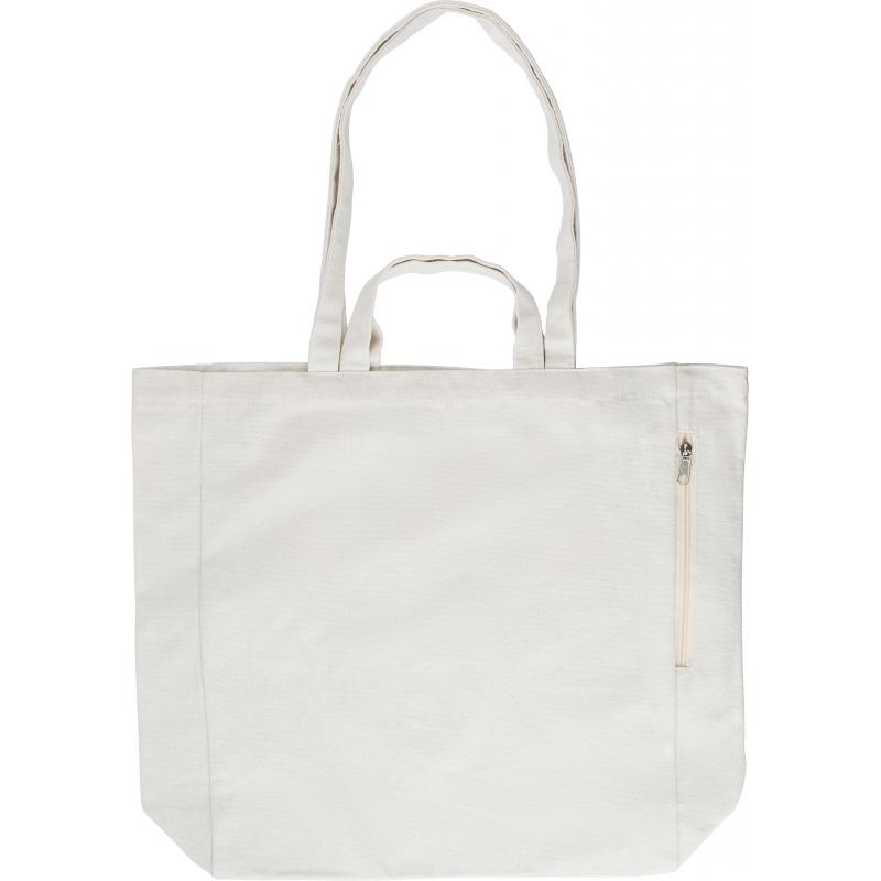 Polyester boodschappentas en gerecycled katoen (350 g/m²) met korte en lange hengsels. Zakje met rits aan de zijkant.
