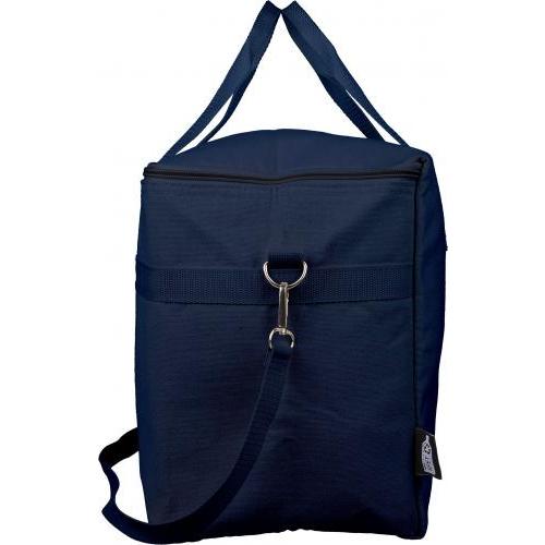 Koeltas van gerecycled polykatoen (33 gsm) met een inhoud van 23 liter. Voorzien van twee draaghengsels (3,5 × 60 cm), een verstelbare schouderriem (2,5 × 110 cm) met metalen gesp en bijpassend bandmateriaal. Geïsoleerd met aluminiumfolie. Voorzien van een rPET-label aan de buitenkant en een label aan de binnenzijde.