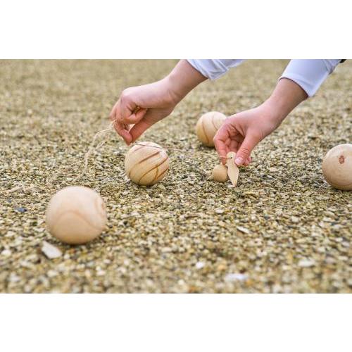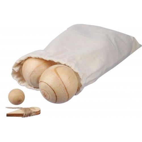 Houten balspelset, inclusief 6 ballen (7 cm per stuk) en 1 kleine bal (2 cm). Wordt geleverd met een touw en als set verpakt in een katoenen trekkoordzak. Geschikt voor 4-6 spelers en ideaal voor behendigheid activiteiten.