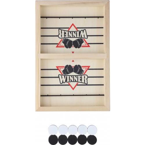 Houten lanceerspel. Bevat 10 schaakfiches (5 witte en 5 zwarte) en een handleiding voor eenvoudige opzet en gebruik. Een snel behendigheidsspel voor volwassenen met in totaal 11 onderdelen. IIndividueel verpakt in een bruine kartonnen doos met geïllustreerde binnenzijde.