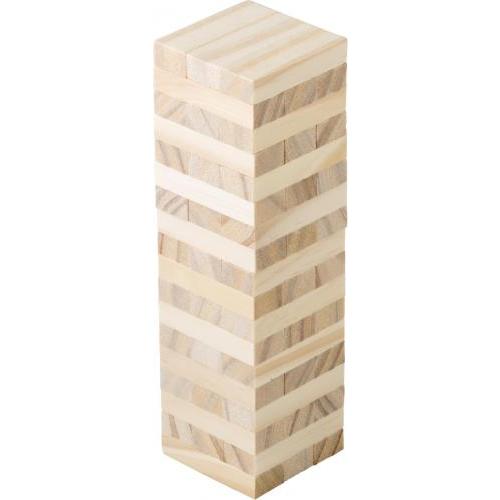 Grenenhout toren spel. Verpakt in katoenen zakje.