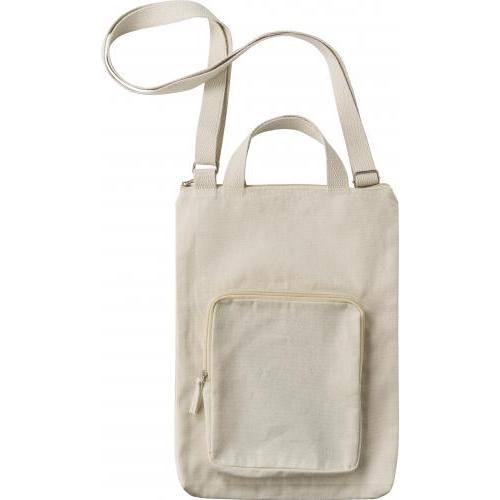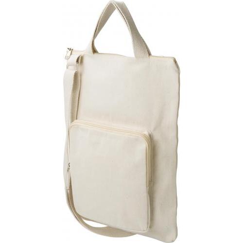 Katoenen (340 g/m2) laptoptas (15 inch). Eén groot compartiment met ritssluiting, klein voorvak met ritssluiting. Twee korte handvatten en één verstelbare schouderband.