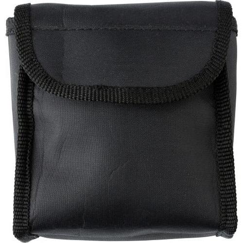 Kunststof verrekijker (4 x 30) met rubberen elementen, verpakt in nylon etui met riemlus en incl. schoonmaakdoekje.