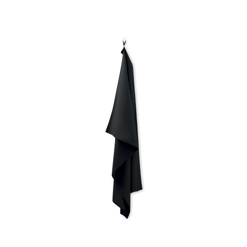 Microvezel handdoek van 90% polyester en 10% polyamide met elastische ophanglus. Lichtgewicht sneldrogend. Afmeting 100cm x 150cm.