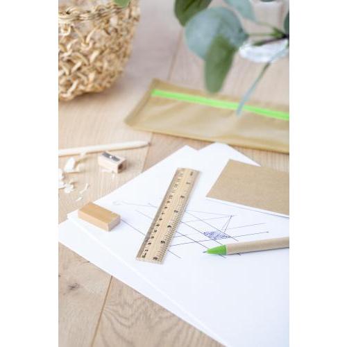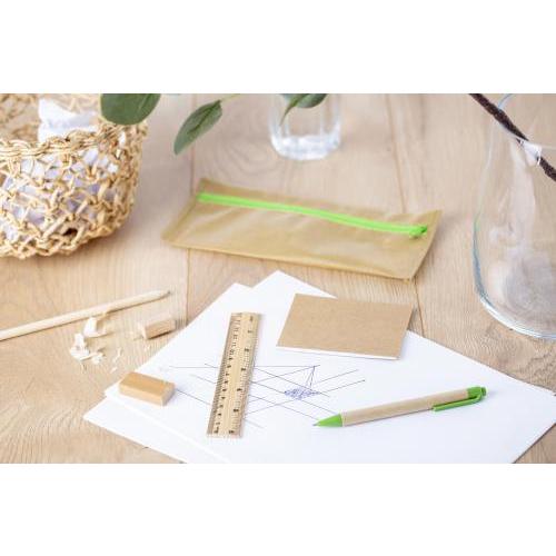 Non-woven eco-style potlodenetui, inclusief liniaal, pen, potlood, puntenslijper, gum en schrijfblok.