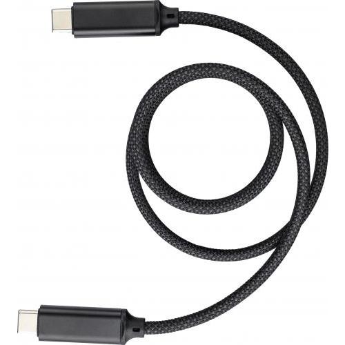 Nylon Type-C naar Type-C data- en oplaadkabel van 1 meter lang. Gegevenssnelheid van 240 Mbps. De ingebouwde magneet zorgt ervoor dat de kabel automatisch opgerold wordt in een gestructureerde vorm. 240 Mbps gegevenssnelheid / 60W oplaadoutput. Per stuk verpakt in een bruin kartonnen doos.