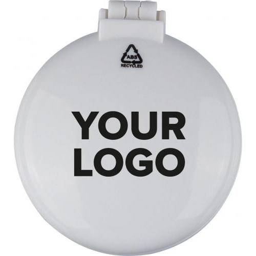 Cassette van gerecycled ABS met geïntegreerde borstel en spiegel. Praktisch ontwerp voor gebruik onderweg en afgewerkt met een gerecycled logo.