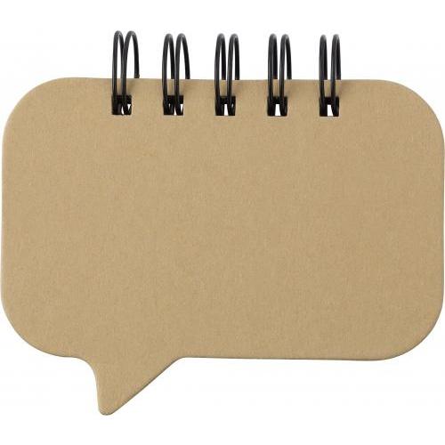 Papieren boekje met spiraal. Inclusief vijf kleuren kleine zelfklevende memoblaadjes, 20 blaadjes per kleur en vier kleuren grotere zelfklevende memoblaadjes, 25 per kleur.