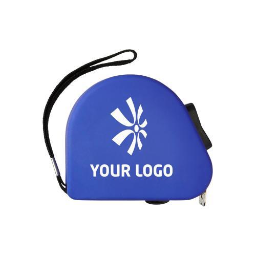 Kunststof rolmaat (5 meter/200 inches), met metalen riemclip en polskoord.