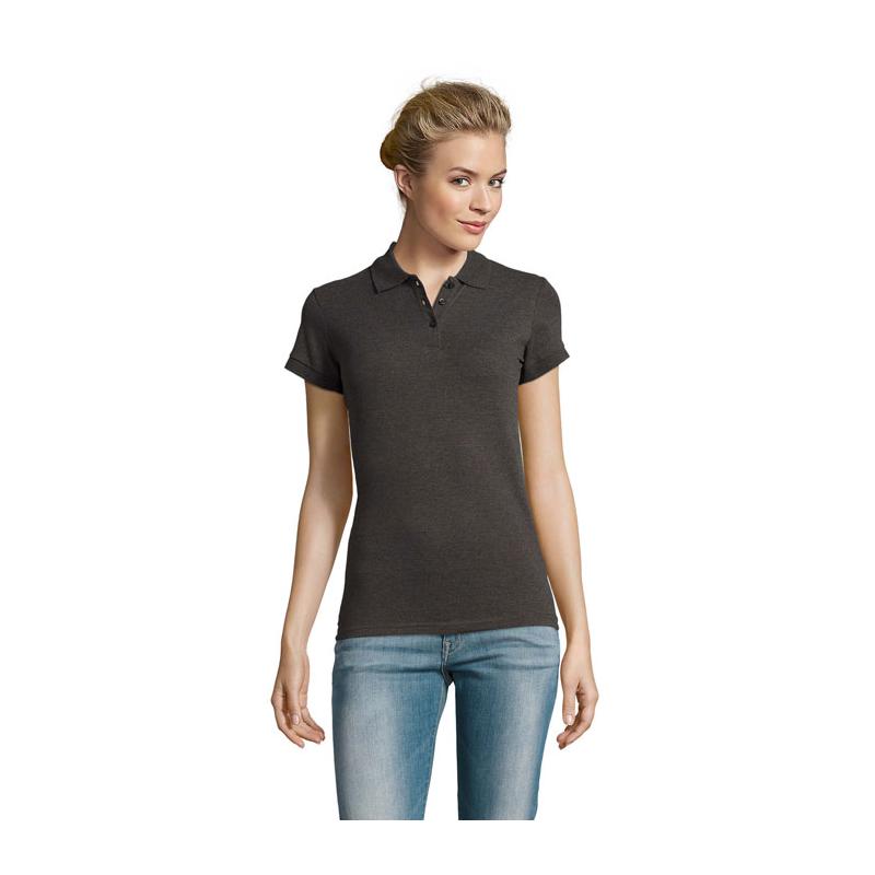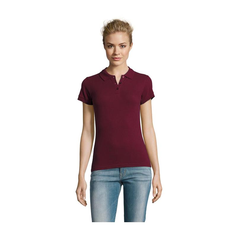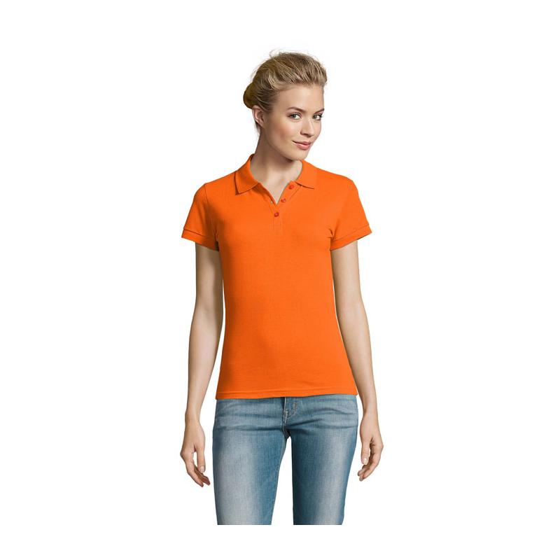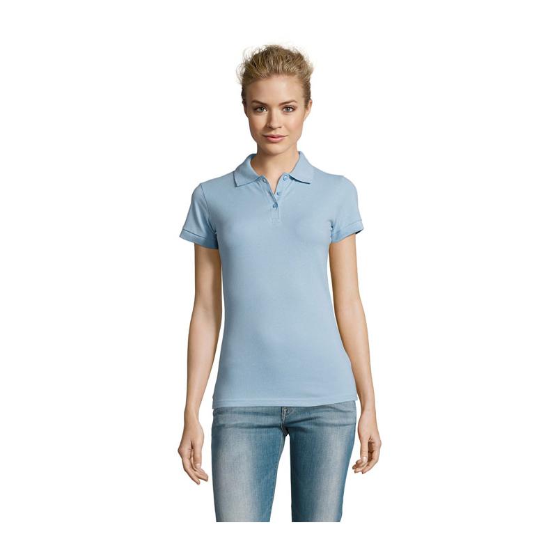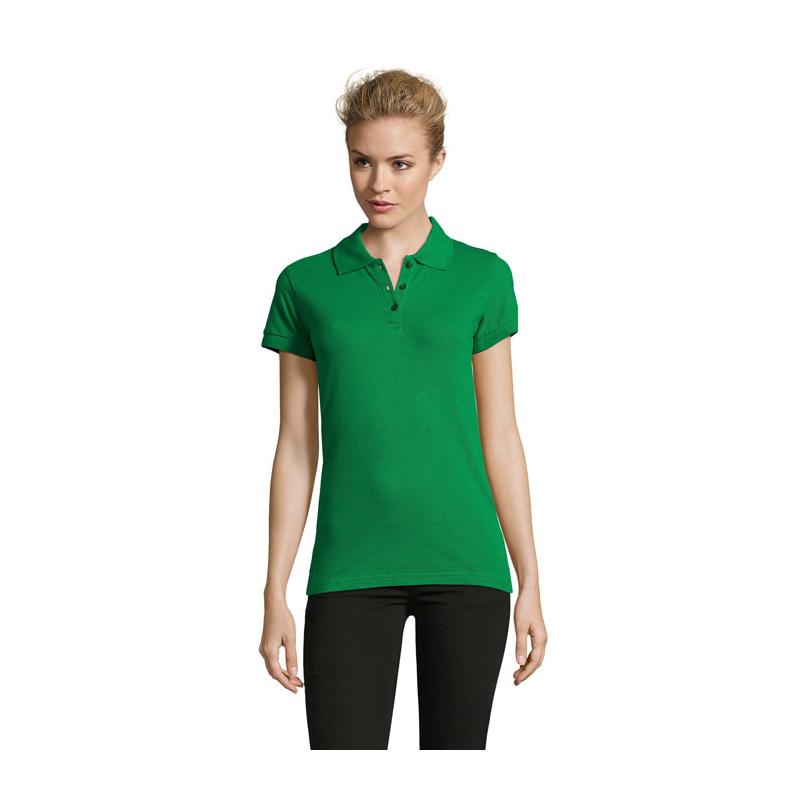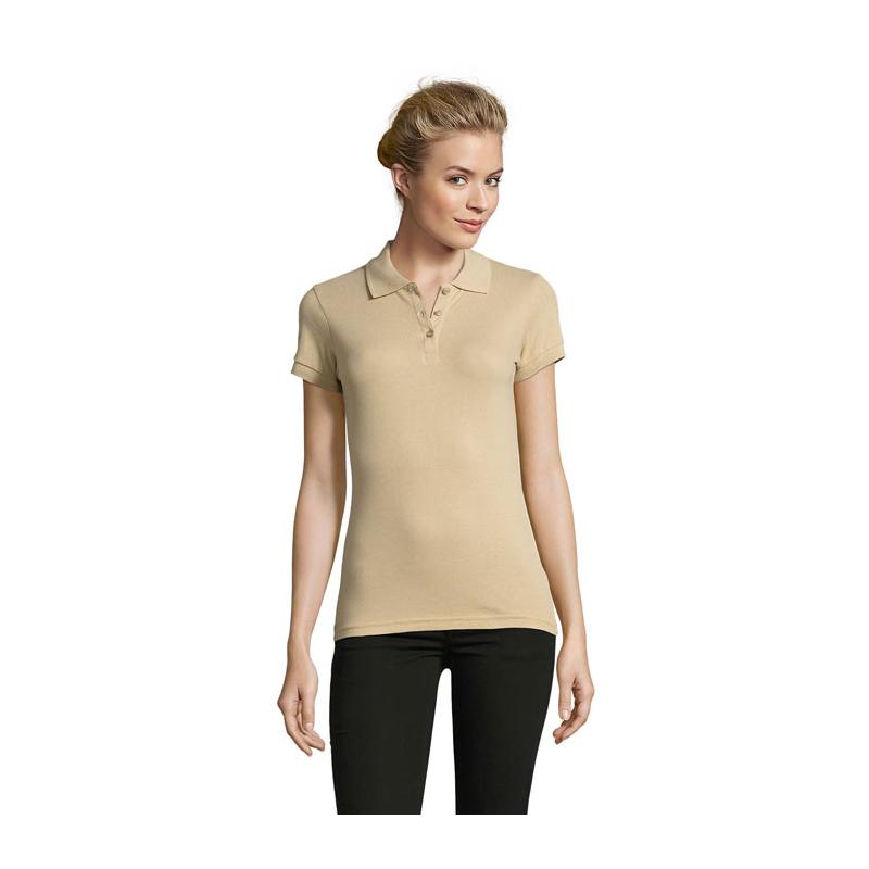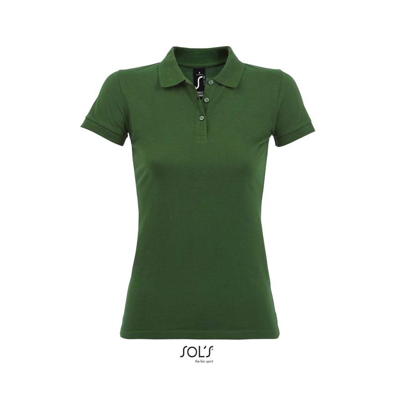 Sol's perfect dames polo 180g m². 100% gekamd katoen ringspun. Nieuwe steek gestoken met 2 garen. Geribde 1x1 kraag en manchetten. Dubbele kraag. Sluiting parelwitte knopen kleur op kleur. Vervangknoop in binnennaad langs zijkant. Gesneden genaaid.