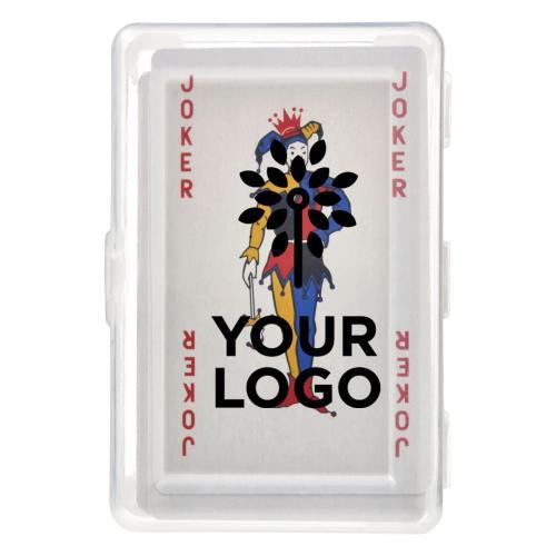 Klassieke speelkaarten in transparante PET cassette. Bestaande uit 54 kaarten.