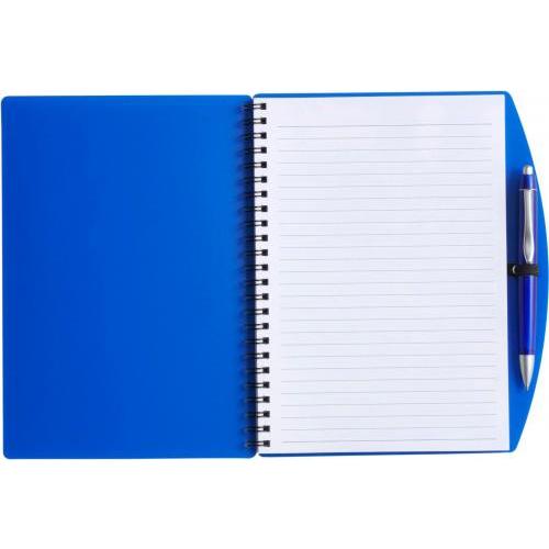 Notitieboekje (A5), met PP omslag, incl. kunststof balpen met metalen clip, blauwschrijvend, en gelinieerd papier (65 vel).