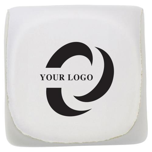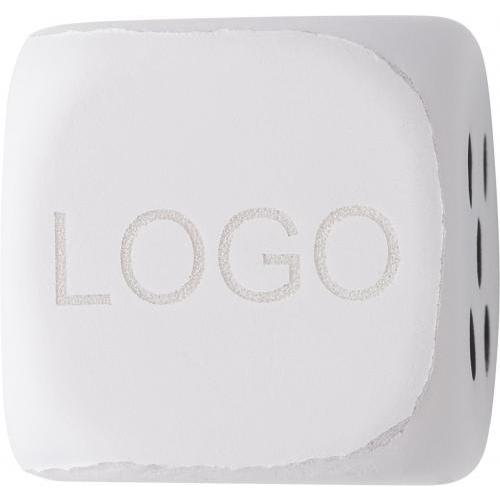 Anti-stress figuur van PU foam, model 'dobbelsteen met cijfers'. De zijde tegenover de 6 is beschikbaar voor uw bedrukking.
