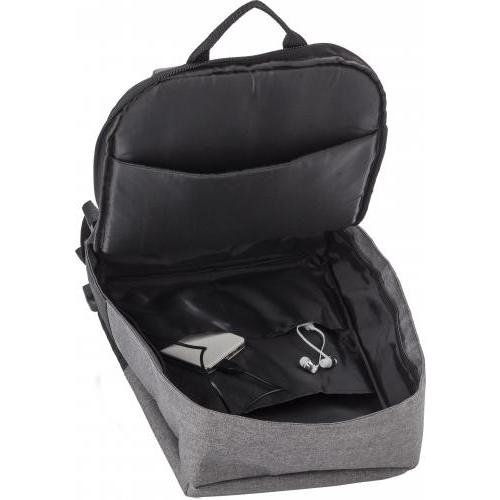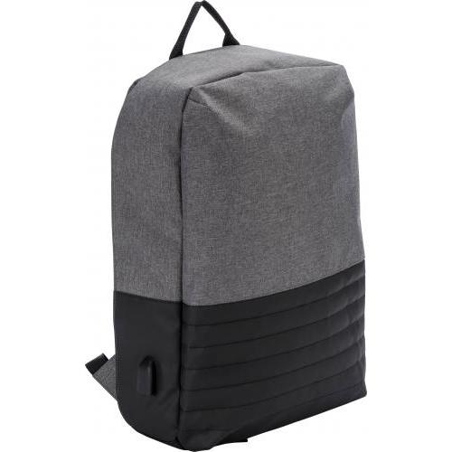 PVC (600D + 300D) tweekleurige anti-diefstal rugtas met verstelbare en gewatteerde schouderbanden en gewatteerde rug. Groot vak met rits en gewatteerd laptop vak (15 inch). USB aansluiting aan de buitenkant, met kabel aan de binnenkant.