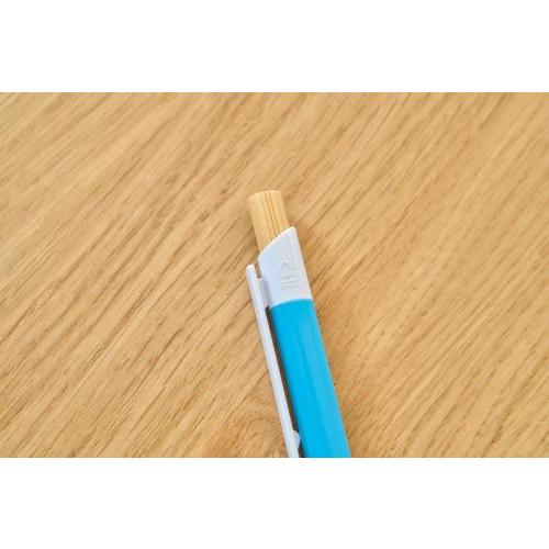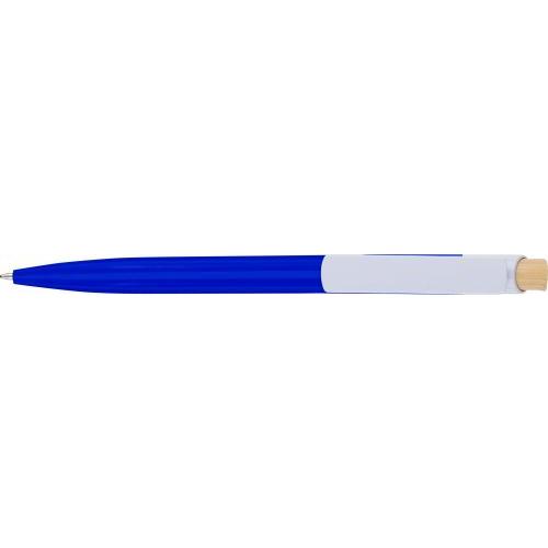 Gerecycleerde ABS balpen met bamboe. Voorzien van een gerecycled logo in het in-mould. Geschatte schrijflengte van 600 meter. Blauwe inkt.