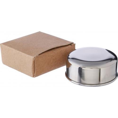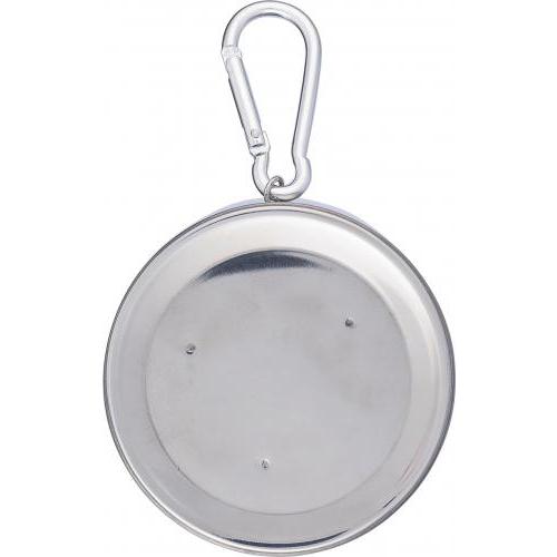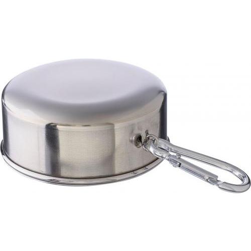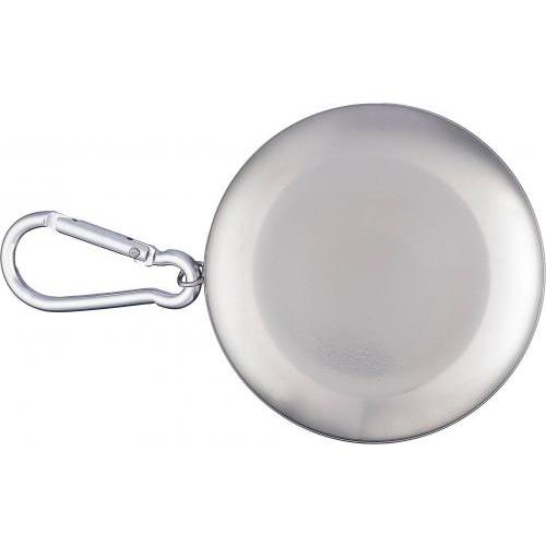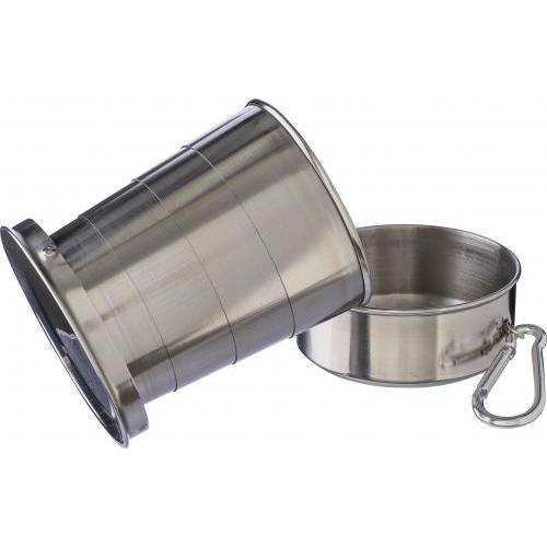 Roestvrijstalen opvouwbare beker (220 ml) met een metalen karabijnhaak. Per stuk verpakt in een bruin kartonnen doos.
