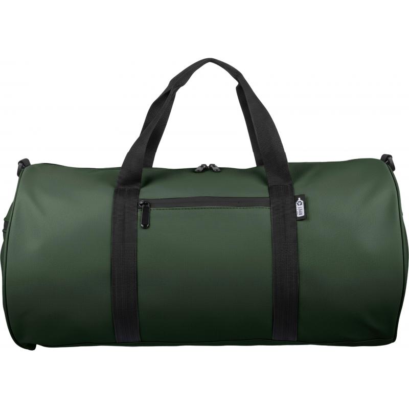 rPET sporttas gemaakt van 600D polyester met 210D voering en waterafstotende PU-coating. Voorzien van een groot hoofdvak met ritssluiting, klein voorvak met ritssluiting voor decoratie, een extra klein zijvak met ritssluiting en een zijvak van mesh. Uitgerust met twee handvatten en een verstelbare schouderriem. Inhoud 40 liter. Inclusief rPET-label aan de buitenzijde.