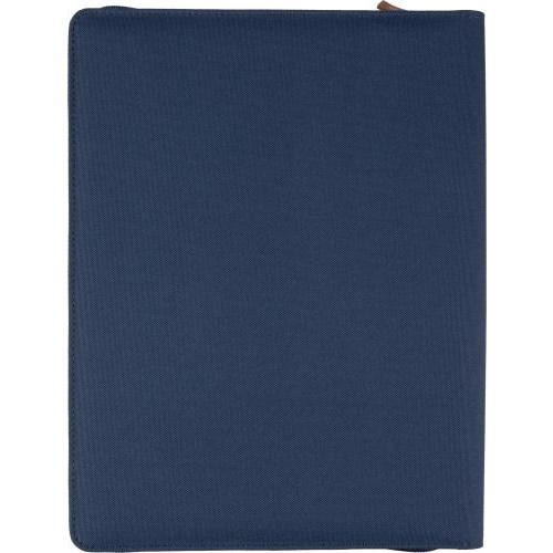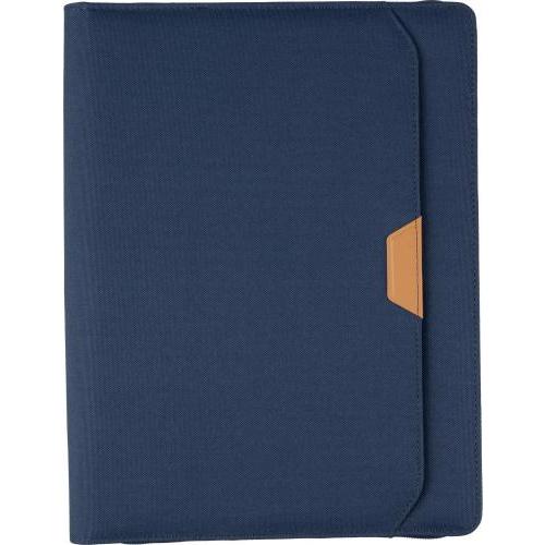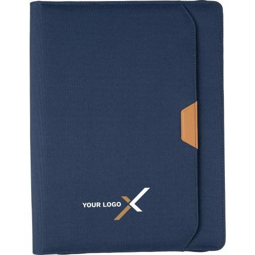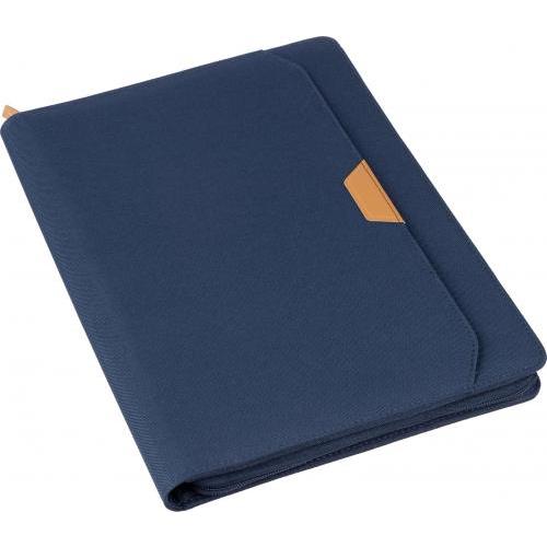 rPET map (ca. A4) met PU-detail en rits. Inclusief notitieboek met 20 gelinieerde pagina’s, meerdere vakken en een pennenlus. Klein vak aan de voorkant. Individueel verpakt in een bruine kraftdoos.