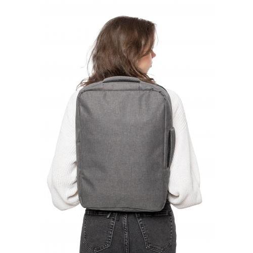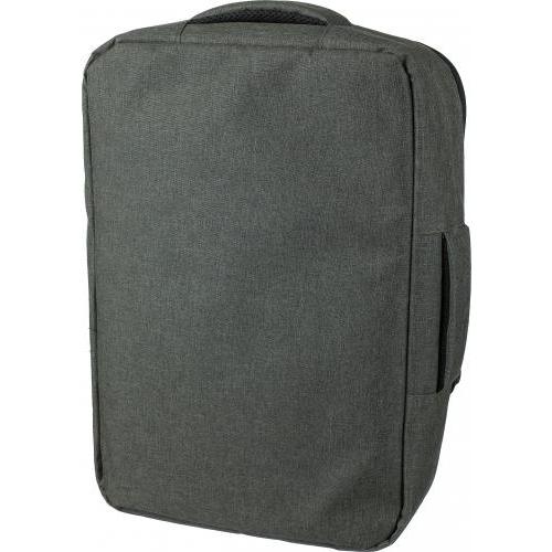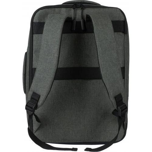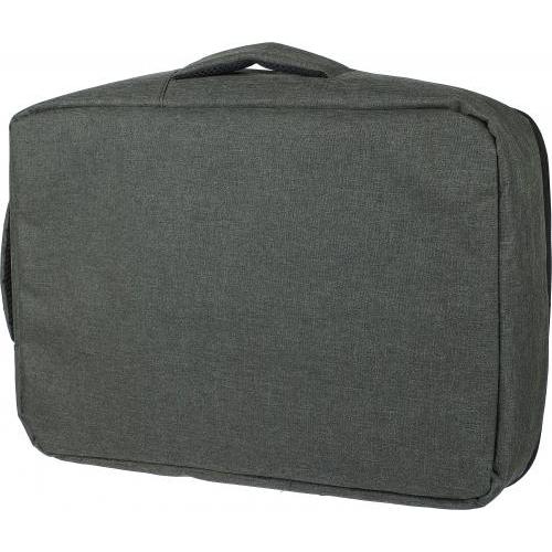 Gerecyclede rPET polyester 300D laptoptas met een 210D rPET-voering. Voorzien van een ruim hoofdvak met ritssluiting en meerdere insteekvakken, een laptopvak met klittenbandsluiting geschikt voor een 15-inch laptop, en een capaciteit van 12L. Het ontwerp bevat een verstevigde, geventileerde rug, verstelbare schouderbanden, een zijhandgreep en een trolleyband. Draagvermogen: 10 kg.