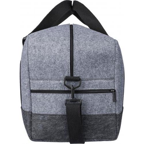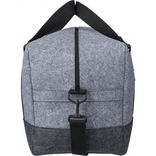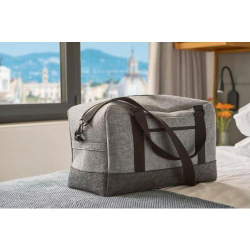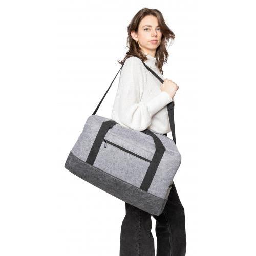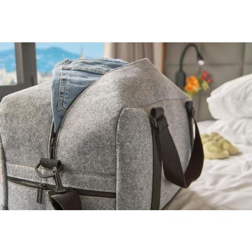 rPET Reistas van vilt met canvas draaghengsels en een verstelbare schouderriem. Voorzien van een ruim hoofdvak met ritssluiting en een klein voorvak met ritssluiting. Inclusief rPET-label. Capaciteit: 30 L. Draagvermogen: 10 kg.