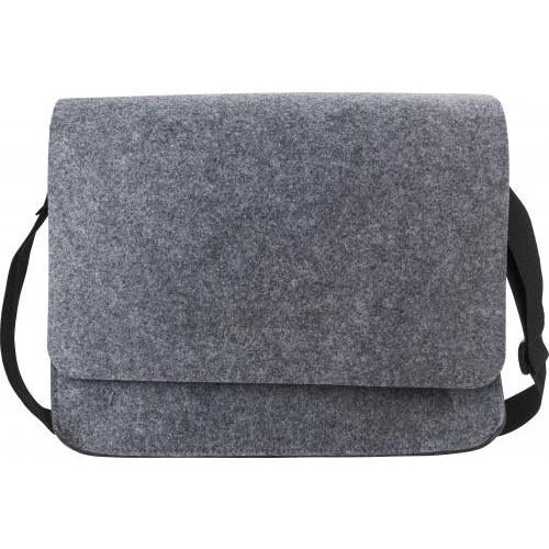 rPET vilten laptoptas(15 inch) met klittenbandsluiting en verstelbare draagband.