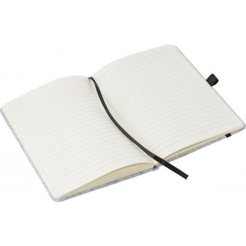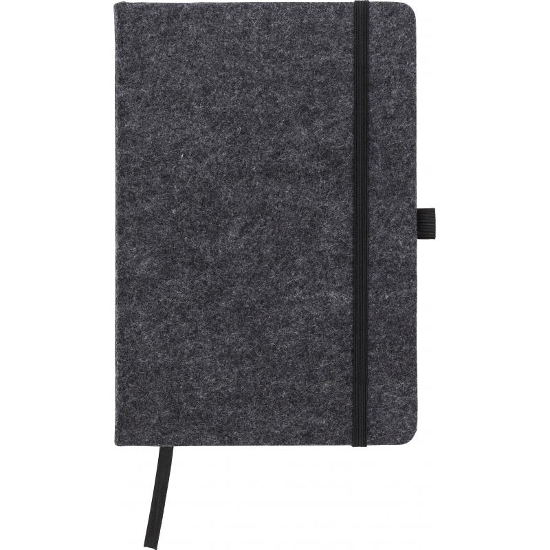 rPET vilten notitieboek (A5), met 160 gelinieerde pagina's, penlus, bladwijzer en elastische band over de omslag.