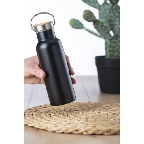 Roestvrijstalen (s/s304) dubbelwandige drinkfles (500 ml) met bamboe schroefdop.