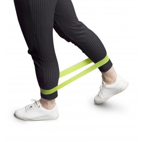 Set van drie elastische fitnessbanden met verschillende weerstanden. Verpakt in een plastic doosje.