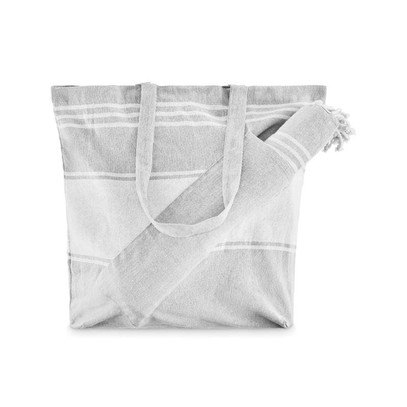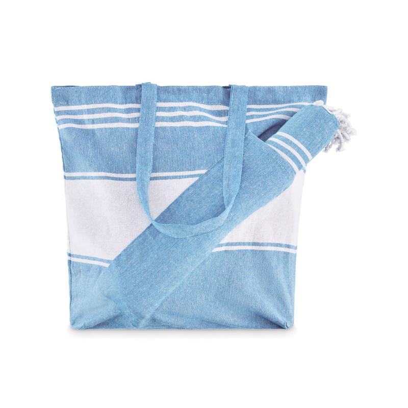 Set van hamam strandlaken met strandtas. 70% katoen en 30% polyester 180g m².