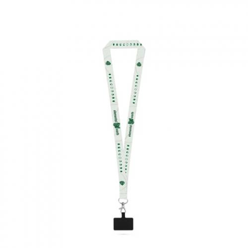 Sublimatielanyard van gerecycled polyester 100% rpet met karabijnhaak en smartphonehouder. Personalisering is mogelijk aan beide zijden van de band. Product geproduceerd in europa. Prijzen zijn inclusief sublimatiepersonalisatie. Personaliseringsoppervlakzijde 20 x 940 mm