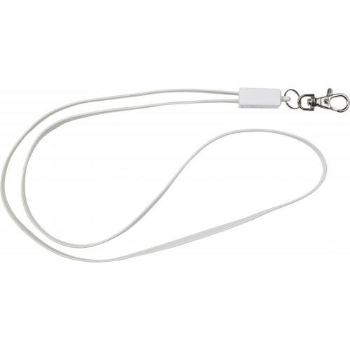 TPE lanyard en laadkabel in één. De kabel is ongeveer 90 cm lang, met een USB en micro USB aansluiting, die ook functioneert als Lightning aansluiting wanneer omgedraaid. De vierkante sluiting heeft een karabijnhaak.