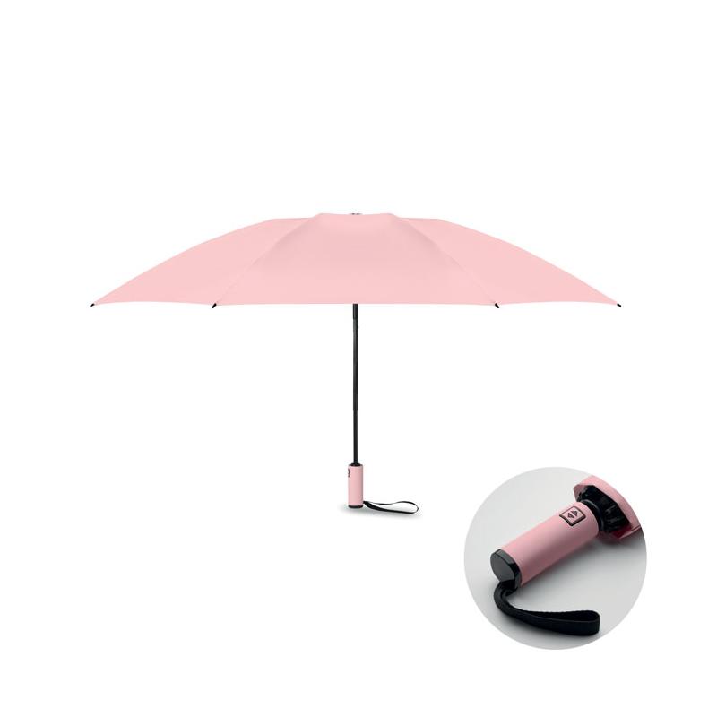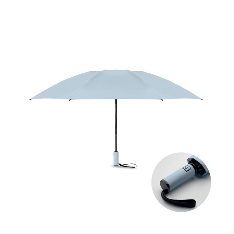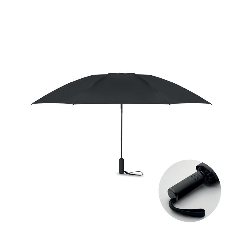 inch 3-voudige omgekeerde windbestendige paraplu van 190t rpet-pongee en bijpassende pouch. Auto open dicht, volledig zwart frame, glasvezel baleinen een abs handvat met rubberen afwerking.