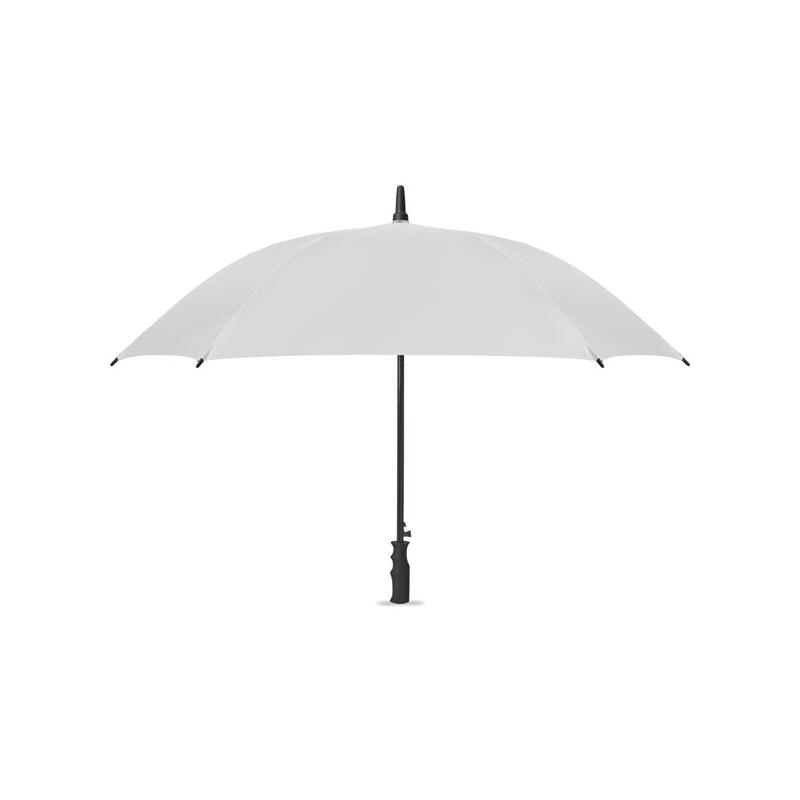 inch windbestendige auto-open vierkante paraplu van 190t pongee polyester. Volledig fiberglas frame en baleinen, abs handvat met rubberen afwerking.