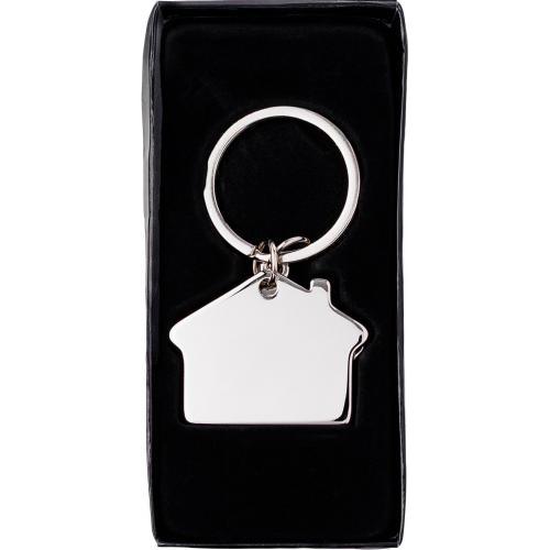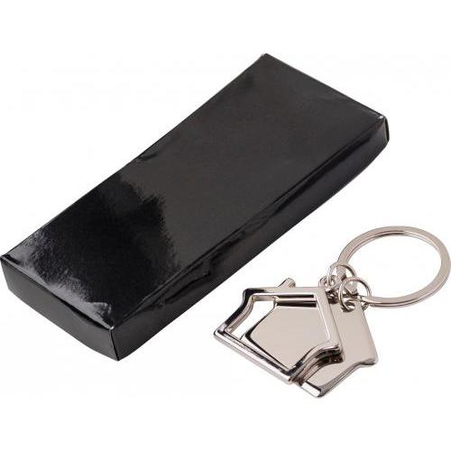 Tweedelige zink sleutelhanger, model 'huis', geleverd in een geschenkverpakking.